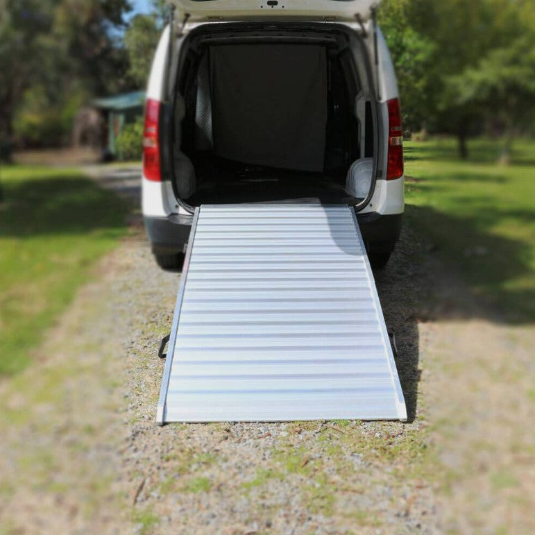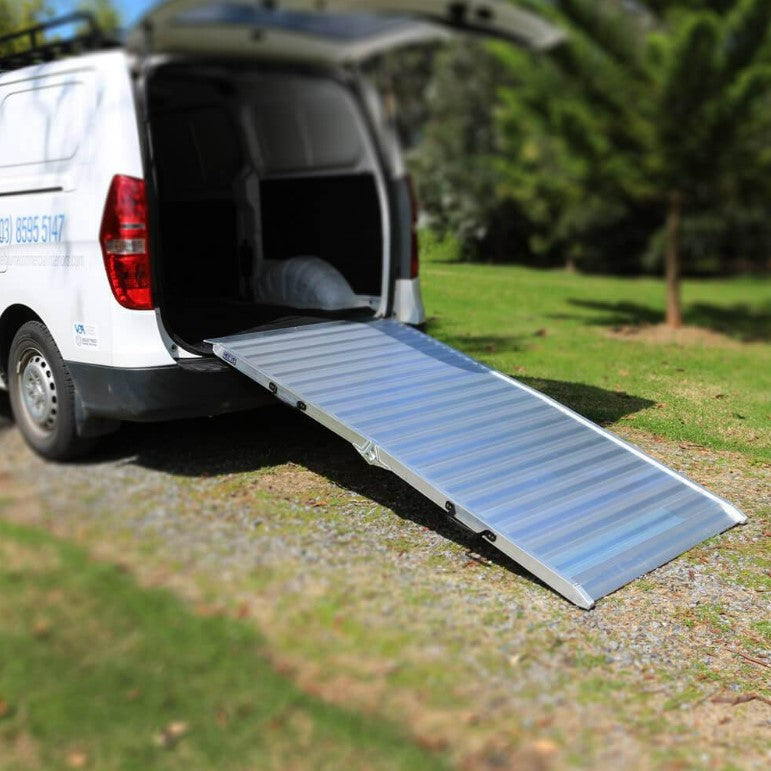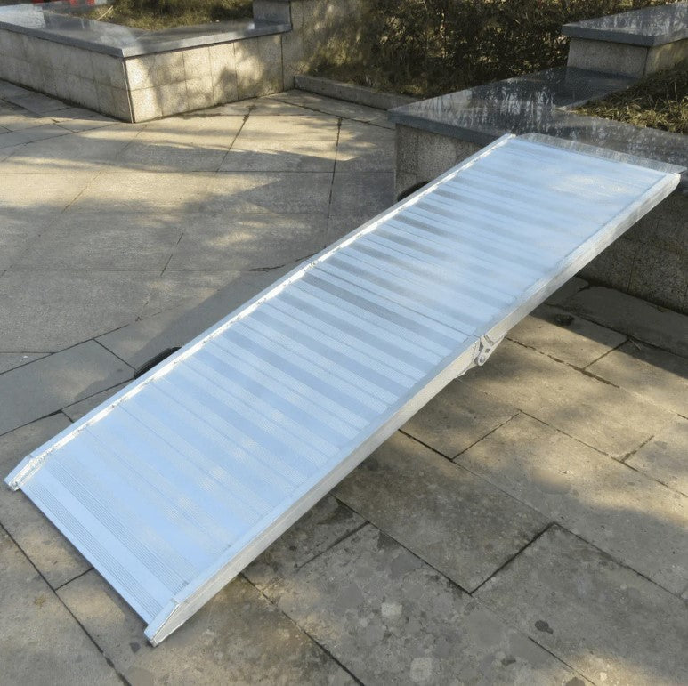 Lightweight and portable the Aluminium Muli-Fold Walk Ramp can easily be carried and positioned in place by one* or two people and can handle weights of up to 400kg whilst folding in half like a suitcase for easy storage.