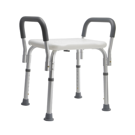 - Raised Armrests ā Assist with safe transfers on and off the stool.