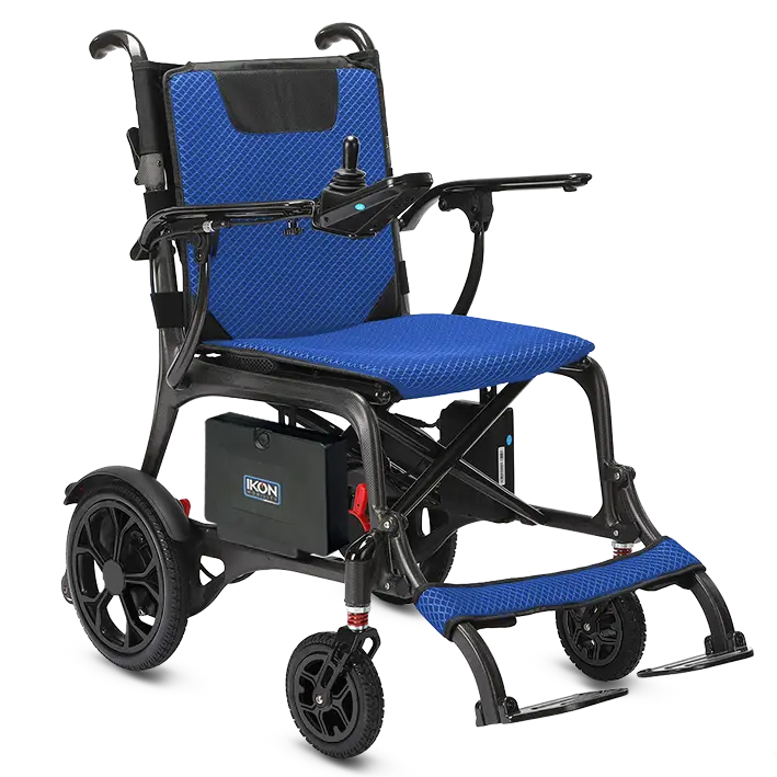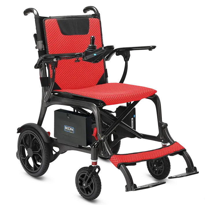 The IK2PCS Enduro Powerlite Electric Wheelchair features a carbon fibre frame with side-folding design, making it compact for transport and storage. Comfortable seating, onboard LCD controls, and airline-safe lithium-ion battery make this wheelchair perfect for daily use and travel.