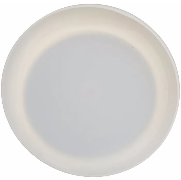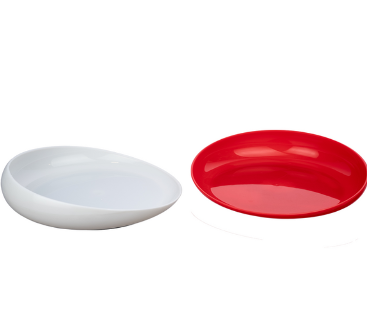 The Round Scoop Dish is designed as an assistive eating plate with a high curved back and moulded low in the front to aid the leverage of food onto an eating utensil. Measuring 20 centimeters in diameter, the inside back of the dish measures 2.8 centimeters high. With a heavy-duty reinforced rim, the plate helps to keep food from being pushed or spilled from the plate edge during the meal.